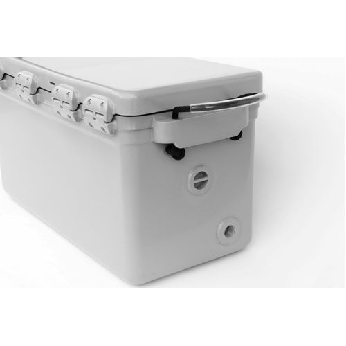 The wall thickness ranges from 80mm thick in the lid where it needs the most insulation. To 40mm to 45mm thick in the base and sides. This gives our coolers great thermal insulation without being overly heavy.