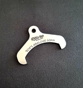 Basic gauge for measuring Roe's Abalone (76mm). Includes a hole for attaching a lanyard.